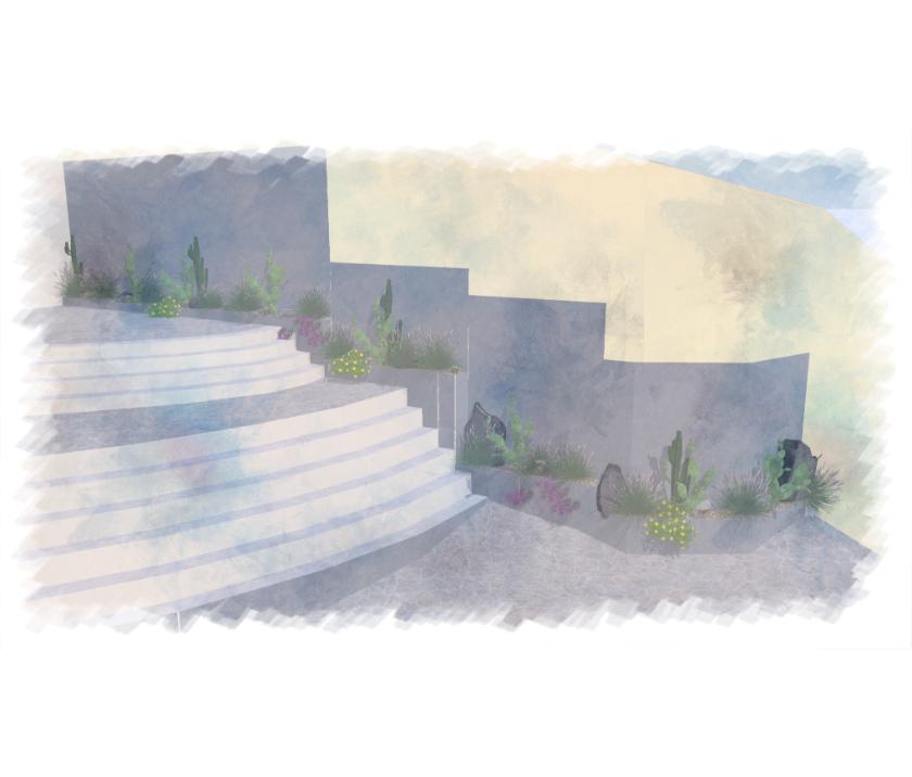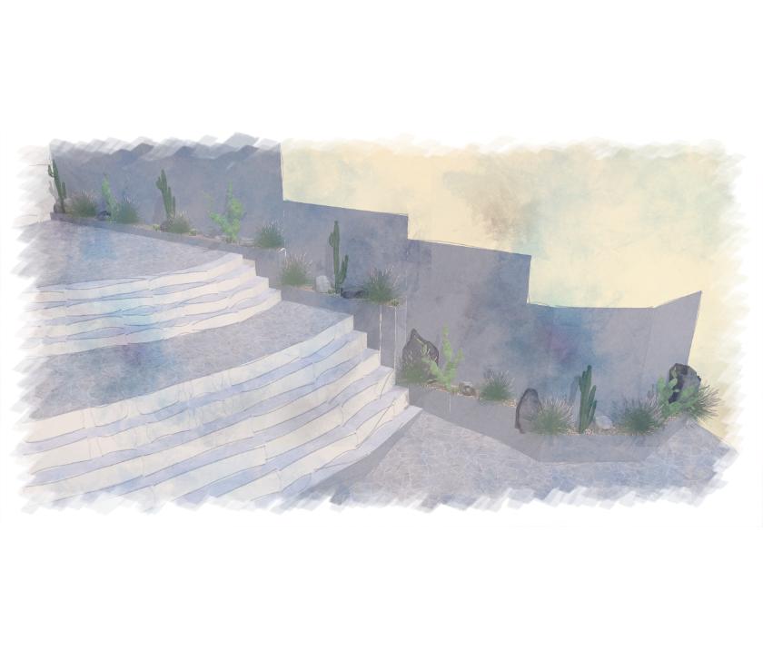 Como o próprio nome do lugar já nos diz, Stone Village significa cidade das pedras, sendo assim nos vem a mente um jardim mais árido com espécies que crescem entre rochas, como cactos, capins e bromélias.